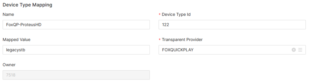 | Owner | Creator of this device type mapping. | * ReadOnly. |