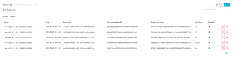Allows to set DRM Protection for that Stream. The user can generate a new key or associate with an existing one.