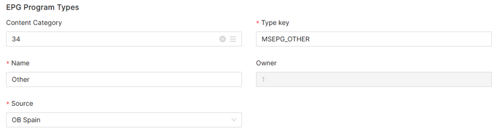 | Source | Controls the access and visibility of this EPG Program Type for other operators. Only operators with rights over this source or its children will be able to see it. |