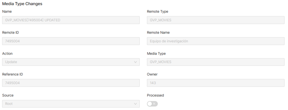 | Processed | Indicates if the media type change was processed already or not. | Read Only |
