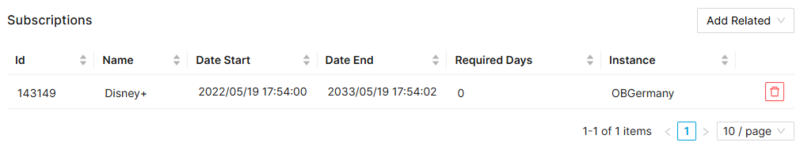 In this screen, it is possible to associate the Service Types created with an Instance, Source and build the relation between the Service and a Subscription. This will allow users to get grants to the different Services offered. If the user buy the Subscription added on this Service screen, he will access granted to this Service.