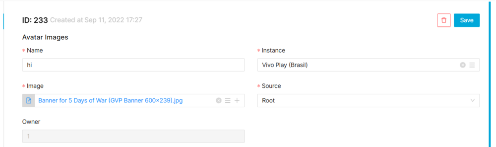 Avatar Images edit is enabled. It can be used to perform modification in the avatar images data. Once finished modifying the avatar images, save changes by using the
