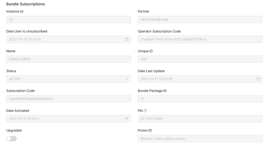 Date User is Unsubscribed Date on which the bundle user has canceled the subscription. ReadOnly