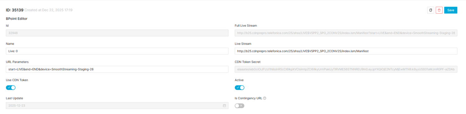 In BPoint Editor you can provide the CDN url configuration for Live OTT playback of this CDN live.