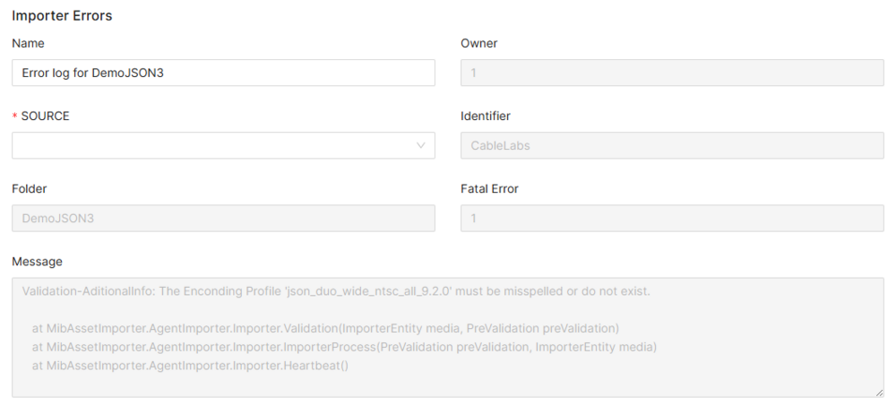Importer Errors creation is disabled.