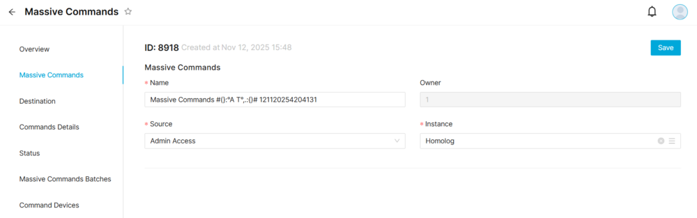 | Source | Controls the access and visibility of this massive commands for other operators. Only operators with rights over this source or its children will be able to see it. |