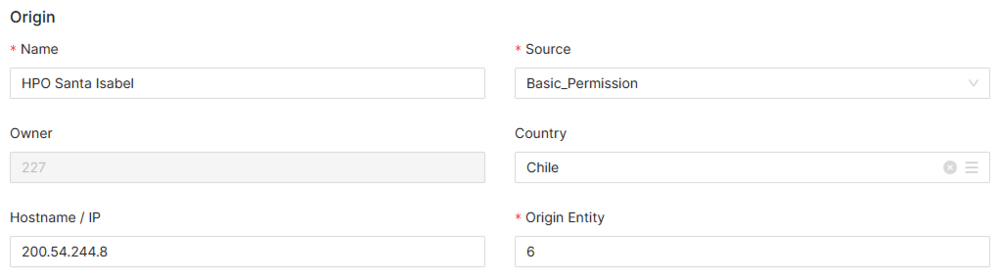| Hostname / IP | Text field to insert the Hostname or IP of this Origin (No validation, the operator must be careful when typing this attribute). | |