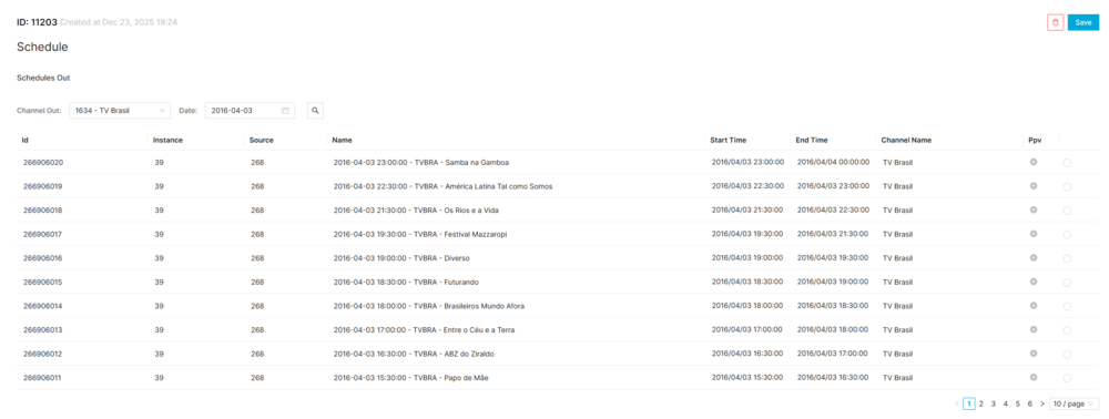 Based on the instance selected in the main form, the channels are loaded into the Select Channel Out field. When the instance is changed, the available channels are automatically updated. After selecting a channel and a date, the schedules are retrieved. If matching data exists, the list is displayed.