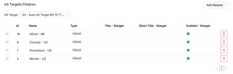 - Empty UX Target, means "by default". That is, relationship parent-child in an instance not using UX Targets or relationship parent-child for a user not belonging to any UX Target.