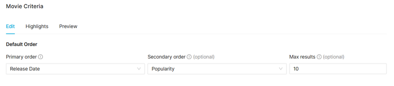 And the Content Criteria Orders available: