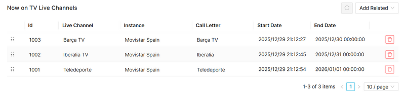 - For Live TV Channels, it displays the Live Channel Instance, Device Type, Enable Playback and Quality data.