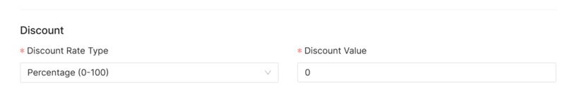 | Discount Rate Type | Controls how the discount is applied. It can be a fixed value or a percentage (0–100) of the base amount. |